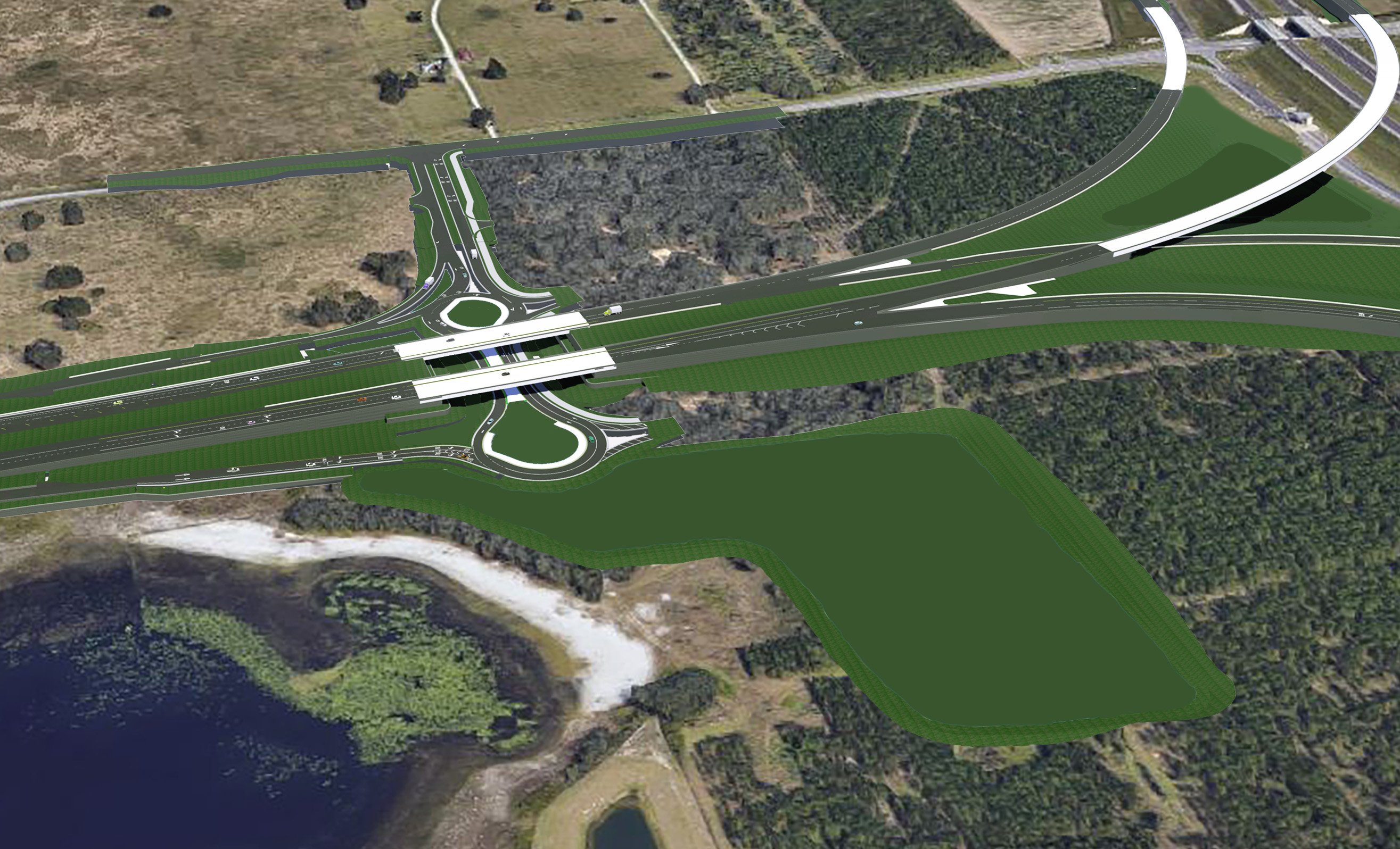 This project design involved a new systems interchange connecting SR 429 to SR 516, a new 4-lane limited access toll facility that extends to US 27. The project features a new intersection. The project features a new intersection with an original design to provide signalization, but the volume of traffic in the area was not enough to warrant a signal installation. DRMP engineers determined a “dog bone” double roundabout would be a safer alternative to slow down drivers at the interchanges.