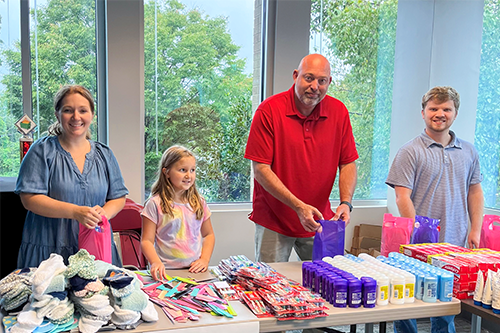 DRMP’s Charlotte office packed 100 toiletry bags for a local women and children's shelter the day before the storm. Traffic Operations Group Leader Brittany Groome, PE, PTOE, RSP1, said she coordinated with staff to redirect those donations to assist individuals impacted by Hurricane Helene, prioritizing the immediate needs created by the storm.