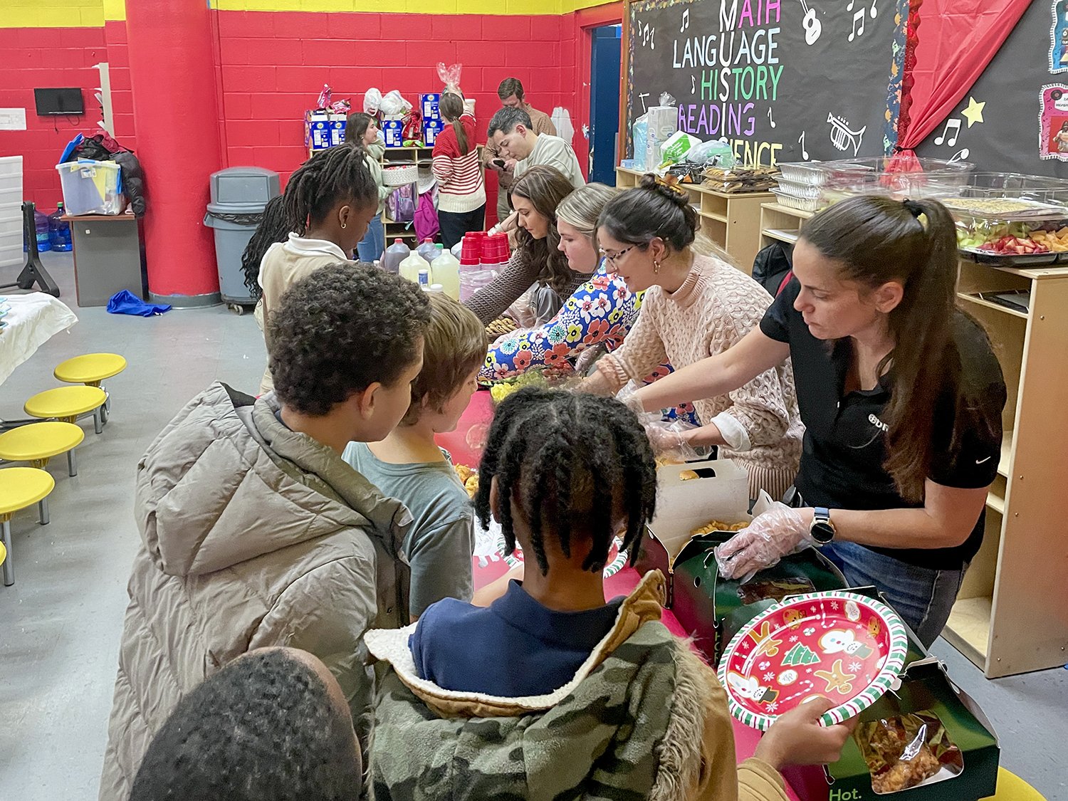 Employees also volunteered at the Center’s Candy Land–themed Christmas Party, where donors decorated booths overflowing with candy, games, and giveaways for nearly 400 at-risk children. The celebration offered families a moment of joy during a challenging time, and every child had the opportunity to visit Santa and Mrs. Claus and receive a special toy.
