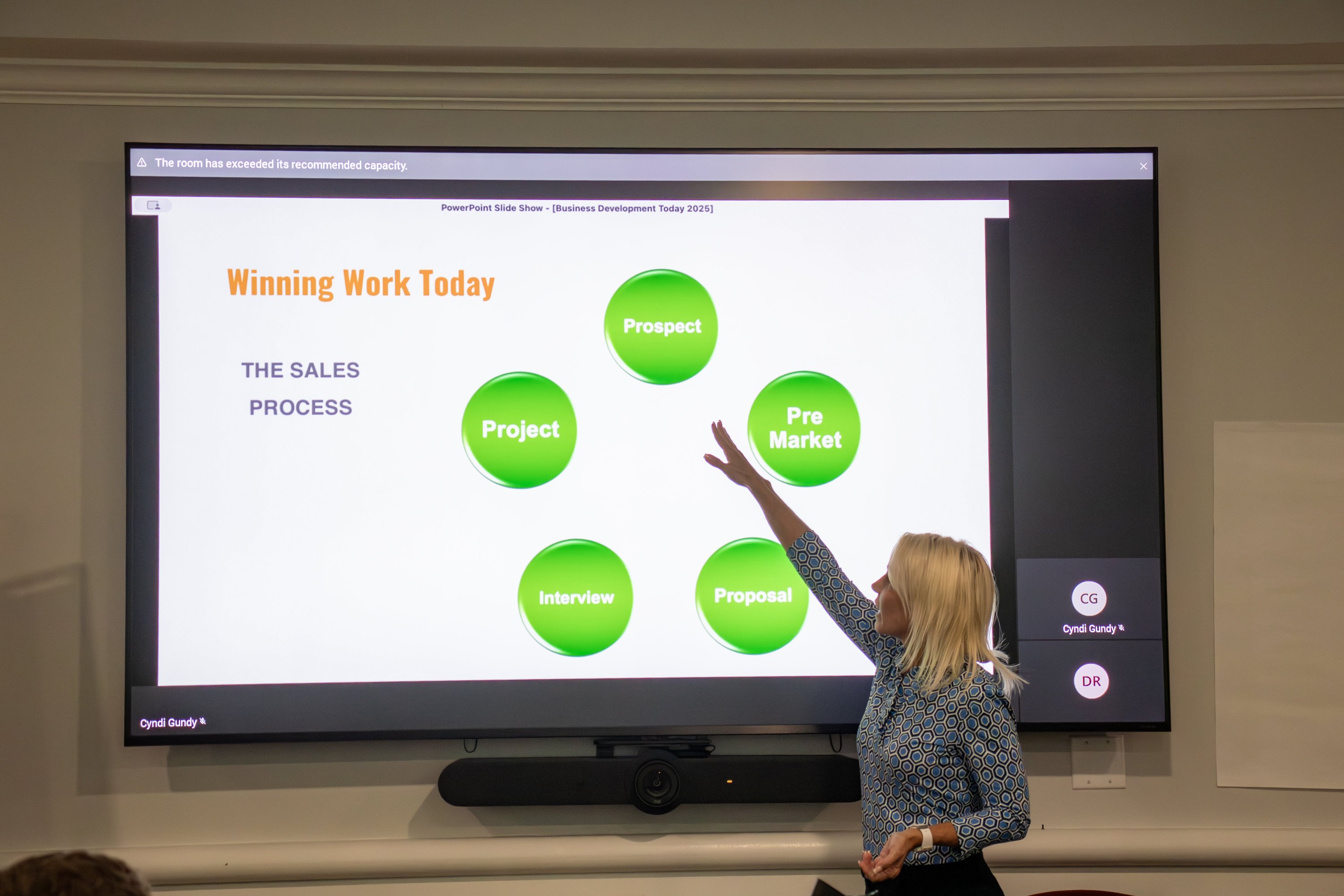 The bootcamp covered several topics, including industry trends, tools and tactics for relationship building, and DRMP’s pursuit process. Attendees learned, shared ideas, and practiced strategies through activities such as capture planning, networking at conferences, and tracking progress on pursuits.