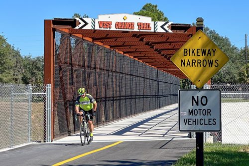 Built on old rail alignments, the award-winning West Orange Trail is a 14-foot-wide scenic paved trail that passes through the Winter Garden, Oakland, and Apopka downtown communities in Orange County.