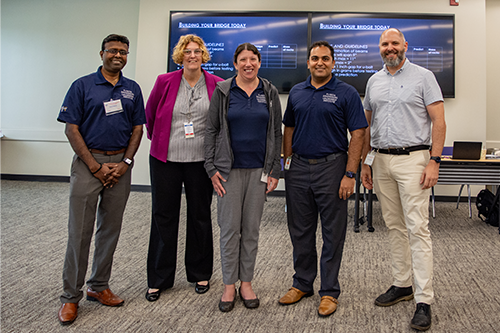 FELI Class 2024 members (from left to right: Pavan Paiavula, PE, Alison Stettner, AICP, Janey Walls, PE, RSP1, Abhijeet Desai, PE, and Juan Ortega-Rosales, PE ) attend the STEM Outreach Solutions training