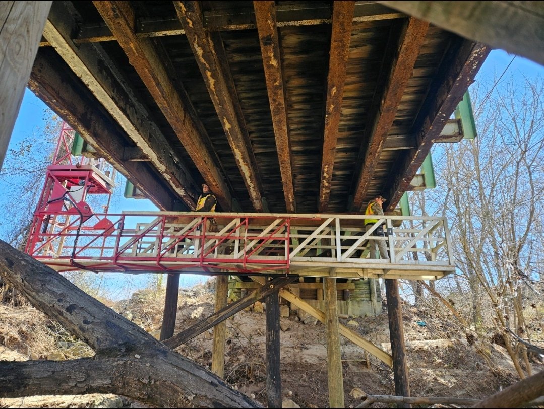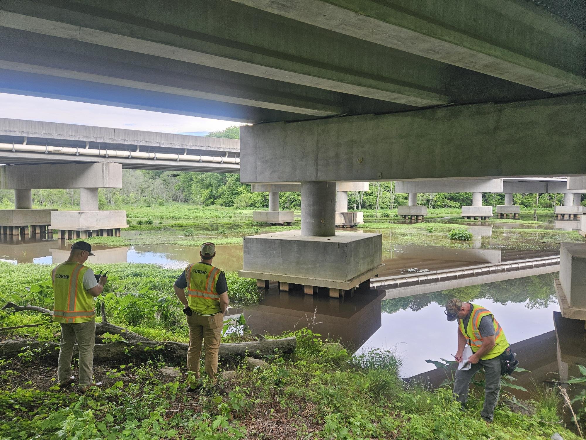Conducting inspections can oftentimes present challenges, particularly due to weather, the location of a bridge, the materials used in its construction, and the terrain it spans, such as deep gorges or elevated areas. Traffic also poses significant difficulties. Our inspectors can often find themselves maneuvering slopes, riprap, and large rocks, or working on flat interstates with favorable weather, but with vehicles whizzing by at 70 mph. Despite these conditions, we strive to do our best, as we are tasked with an important job—evaluating the elements that hold up the bridge.