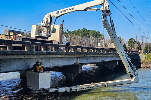 The number of bridges we inspect under the contract varies month to month. Each month, NCDOT assigns us several bridges to inspect, which can be located anywhere around the state. Our NBIS team is working closely with our structures team, which is conducting load-rating analyses to determine the maximum vehicle weight bridges throughout North Carolina can safely support.