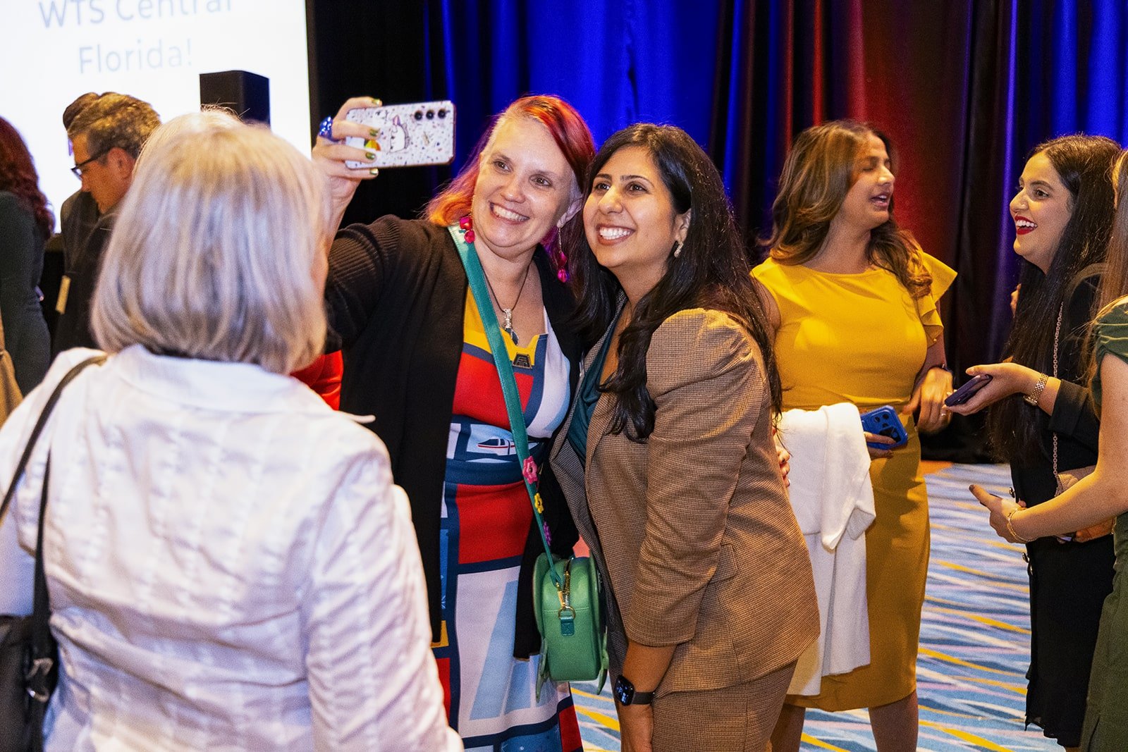 DRMP Noise Group Leader Robyn Hartz, INCE, (holding cell phone) takes a selfie with Florida State Rep. Anna Eskamani, the event's keynote speaker. (Photo courtesy of WTS)
