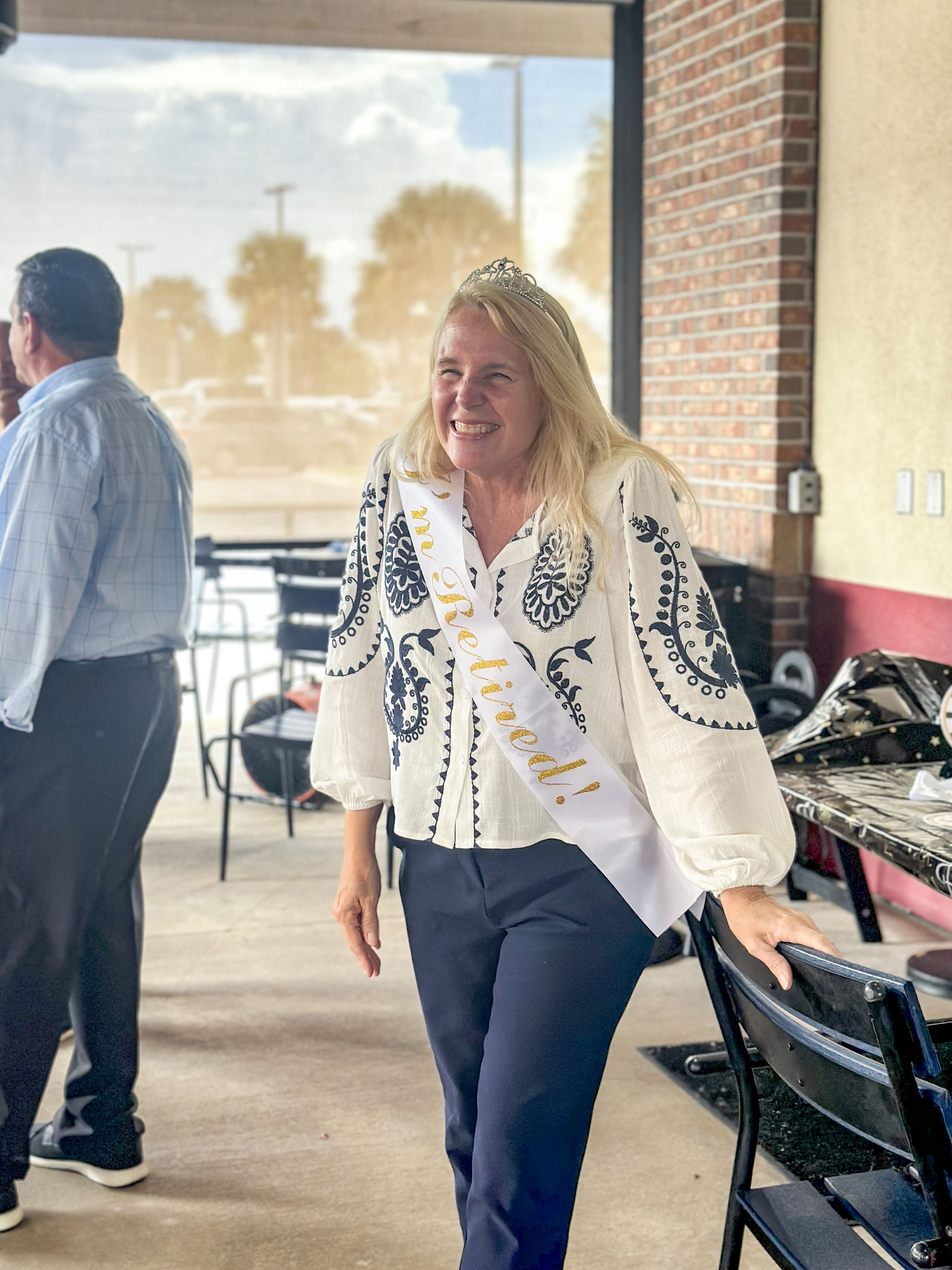 Kim Durden beams at her retirement party.