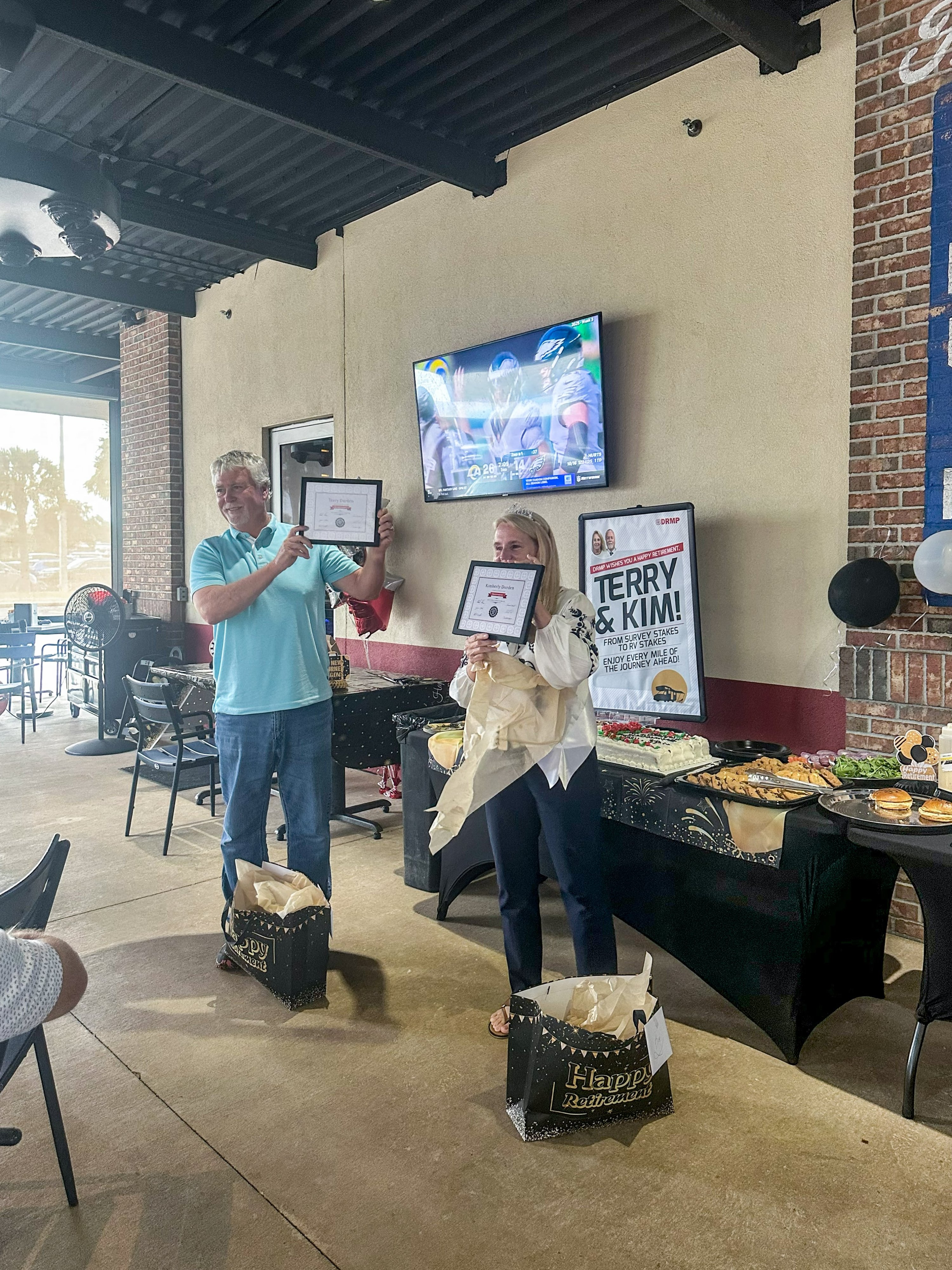 Terry and Kim Durden celebrating their retirement at a party hosted by DRMP.