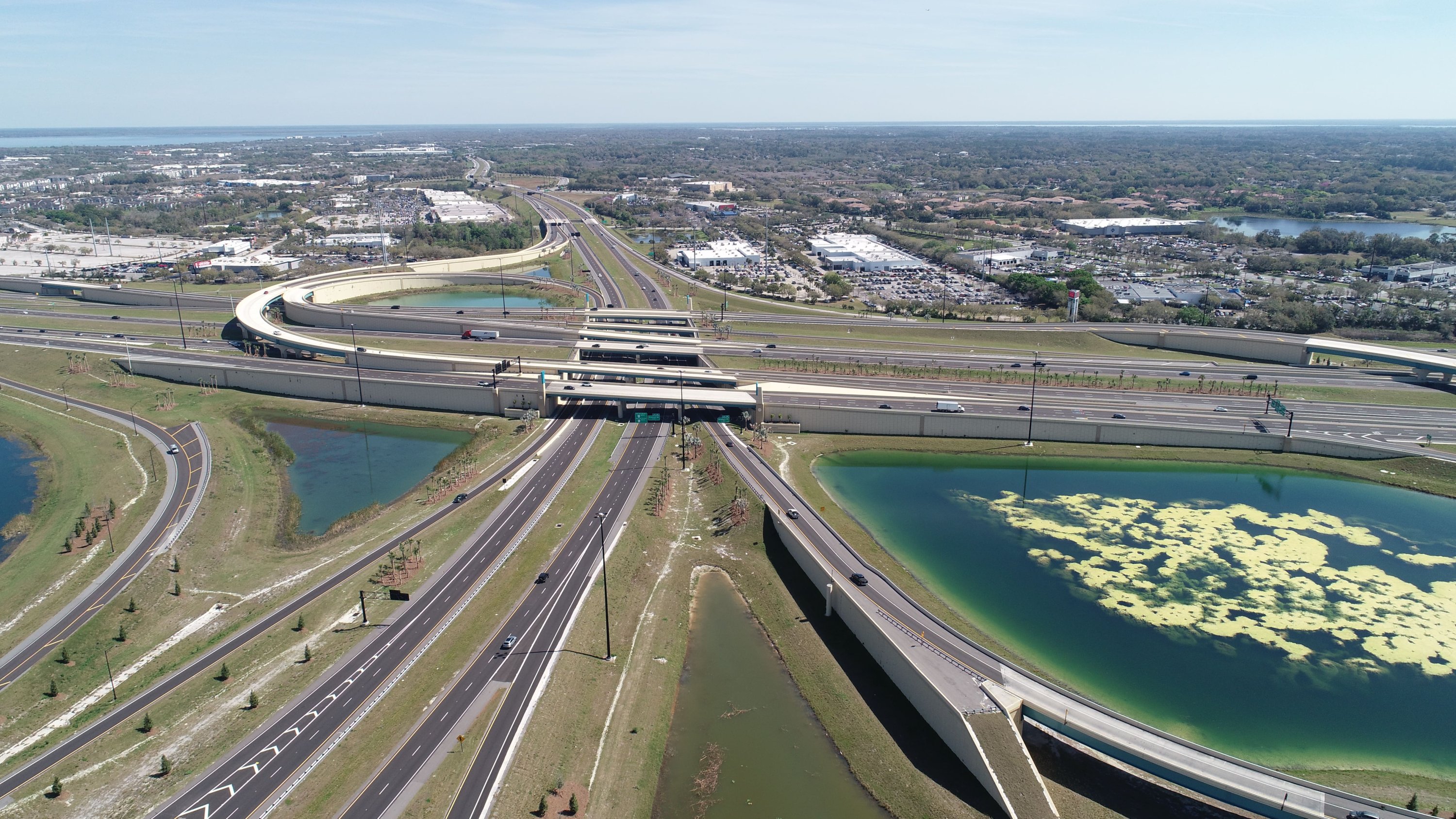 includes the construction of a wildlife crossing under I-4 – the first of its kind in Polk County – and realigned 2 miles of I-4 to accommodate high-speed rail, and the future ultimate typical section. It also converted the existing partial cloverleaf interchange at SR 557 into a diamond interchange with dual teardrop roundabouts, added emergency stopping areas on both I-4 ramps, and widened SR 557 from two to four lanes.
